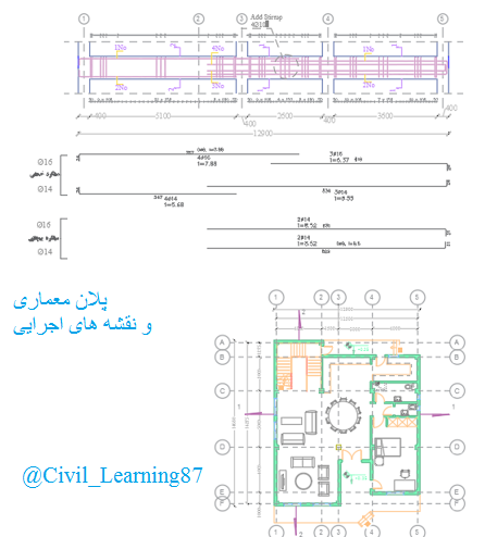 پلان معماری و نقشه های اجرایی سازه 2 طبقه مسکونی بتنی ویلایی قاب خمشی متوسط